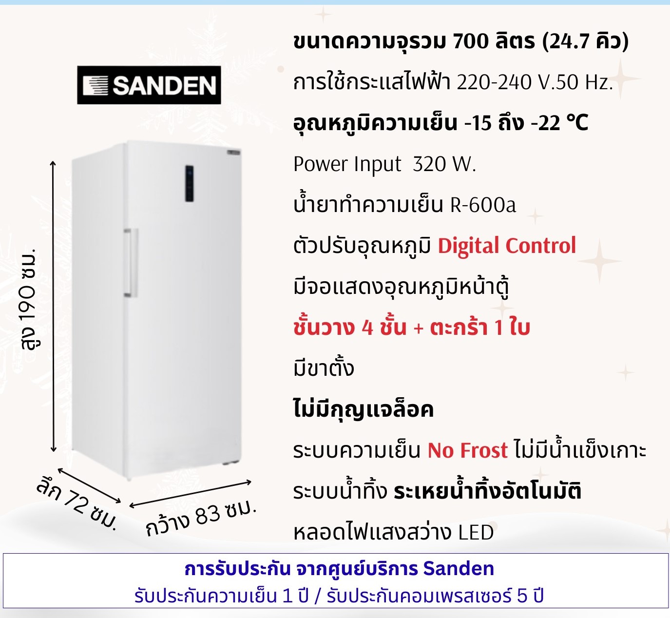 ตู้แช่แข็งทรงยืน SANDEN รุ่น SFN 0700 No Frost